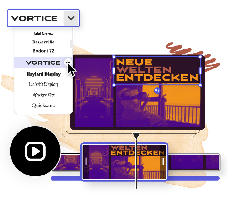 Gestalte trendige Videos und fessle deine Zielgruppe mit beeindruckenden Animationseffekten. Per Mausklick setzt du Icons, Logos, Text, Bilder oder Videos in deinem Projekt in Bewegung. Keine Vorkenntnisse erforderlich.