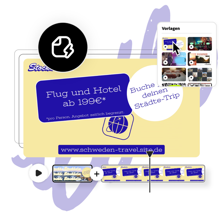 Lasse dich inspirieren und spare Zeit mit professionell gestalteten Vorlagen, mit denen du sofort durchstarten kannst. Adobe Express bietet eine stetig wachsende Sammlung kostenloser Videovorlagen für Social Media, Storys und weitere Anwendungsbereiche. So kannst du beeindruckende Inhalte kreieren. Mit kostenlosen Stock-Audiotracks und -Soundeffekten verleihst du deinen Projekten in Adobe Express eine ganz persönliche Note.