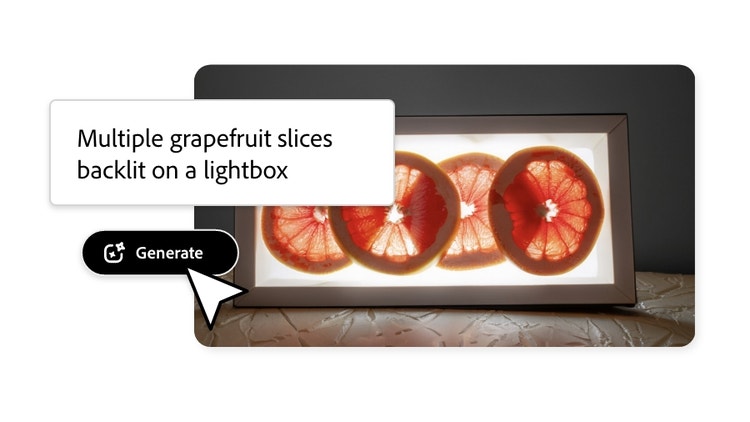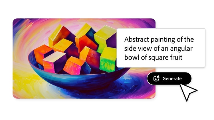 Lasse mit Firefly deiner Vorstellungskraft freien Lauf. Probiere dich aus. Nutze deine Kreativität und erstelle eine unendliche Auswahl an Bildern mit Firefly, der generativen KI-gestützten Inhaltserstellung von Adobe.