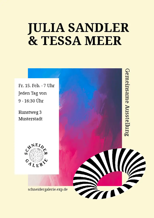 Du möchtest abstrakte Kunst in deinen Postern, Flyern oder Einladungen verwenden? Dann haben wir gute Nachrichten für dich! Abstrakte Kunst folgt keinen Regeln. Dennoch sind einige grundlegende Konzepte und Merkmale zu berücksichtigen – von minimalen Layouts bis hin zu kräftigen Farben.