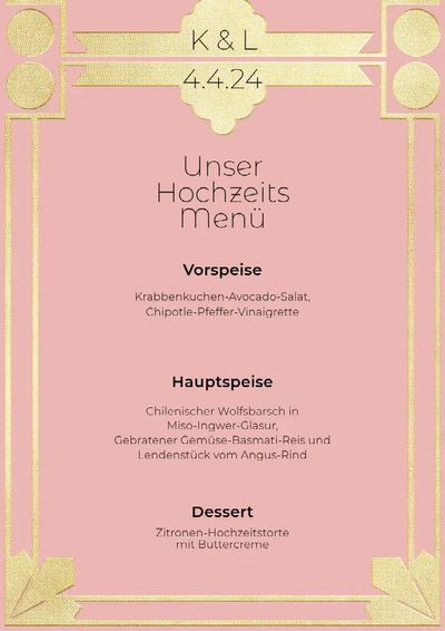 Art-déco-Designs weisen oft metallische Farben auf – schließlich ließen sich die ursprünglichen Künstler*innen von modernen Maschinen inspirieren. Diese Farbtöne sorgen nicht nur für einen subtilen Kontrast bei Partyeinladungen und Postern, sondern eignen sich auch gut für Marketing-Materialien.