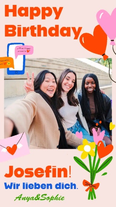 Kostenlose Glückwünsche zum Geburtstag selbst gestalten, und das auch noch ganz einfach? Na klar – mit Adobe Express kannst du persönliche Glückwünsche zum Geburtstag online einfach selbst erstellen. Suche dir einen passenden Geburtstagsspruch aus, öffne Adobe Express und suche dir eine der vielen kostenlosen und anpassbaren Vorlagen für Geburtstagsgrüße aus. Dann musst du deinen Glückwünschen zum Geburtstag nur noch eine persönliche Note verleihen, indem du deinen Spruch zum Geburtstag und ein paar persönliche Worte einfügst und passende, kostenlose Geburtstagsbilder auswählst. Fertig – jetzt kannst du deine Geburtstagsgrüße in einem Format deiner Wahl (etwa als Karte oder als Poster) herunterladen, ausdrucken und verschicken. Oder du sagst digital „Alles Gute zum Geburtstag“ – dann kannst du deine persönlichen Glückwünsche zum Geburtstag einfach herunterladen und per WhatsApp oder E-Mail versenden oder auf Social Media teilen. Darüber hinaus kannst du mit dem kostenlosen QR Code Generator von Adobe Express ganz einfach einen QR-Code erstellen. So kannst du deinen Freunden und Freundinnen ganz einfach persönliche Geburtstagsgrüße schicken, indem du sie auf deine Website leitest. Egal, für welchen Weg du dich entscheidest: Wenn du persönliche Glückwünsche zum Geburtstag verschickst, machst du dem Geburtstagskind an seinem Ehrentag bestimmt eine riesige Freude.