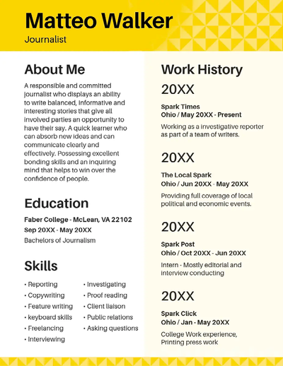 Gib dafür für jede Position die Berufsbezeichnung, das Unternehmen, die Dauer der Anstellung und eine kurze Beschreibung deiner Aufgaben und Leistungen an. Du solltest deinen beruflichen Werdegang in umgekehrter chronologischer Reihenfolge aufführen. - Ausbildung: Hier führst du deinen Bildungshintergrund aus, beginnend mit deinem letzten Abschluss. Gib die Institution, den erworbenen Abschluss, das Datum des Abschlusses und alle relevanten akademischen Auszeichnungen und/oder Preise an.