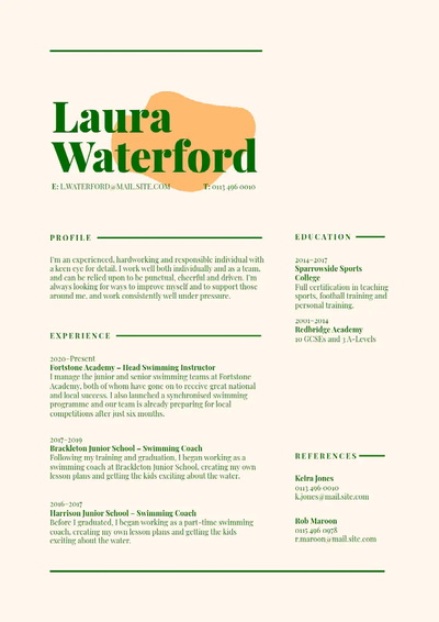 Füge Inhalte hinzu: Nun kannst du deinen englischen Lebenslauf mit deinen Informationen befüllen. Wenn es zu der ausgeschriebenen Stelle passt, kannst du zudem Designelemente hinzufügen, um deinen Lebenslauf optisch von anderen CVs abzuheben.