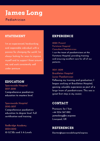 Vorsicht: Achte darauf, dass deine Kontaktangaben vollständig, korrekt und ohne Rechtschreibfehler sind. Auch bei einem Lebenslauf auf Englisch gilt: Der erste Eindruck zählt. - Berufliches Resümee: Gib einen Überblick über deinen beruflichen Werdegang. Nenne die relevanten Stationen deiner bisherigen Berufslaufbahn und erkläre, welche Fähigkeiten du dort erworben hast. Untermauere deine Skills mit Beispielen und erfolgreich abgeschlossenen Projekten. Nach Möglichkeit solltest du diesen Abschnitt in deinem Lebenslauf an die spezifische Stelle anpassen, für die du dich bewerben möchtest. Damit untermauerst du, warum du dich für die Position besonders gut eignest.