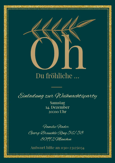 Darüber hinaus kannst du deiner Kreativität freien Lauf lassen. Nutze dafür festliche Bilder, die passende Typografie und weitere fabelhafte Designs. Wenn du nicht weißt, wie du deine leere Einladung füllen sollst und dafür ein paar Anregungen benötigst, dann lasse dich von unseren Vorlagen inspirieren. Diese kannst du ganz nach deinem Geschmack und deinen Bedürfnissen anpassen.