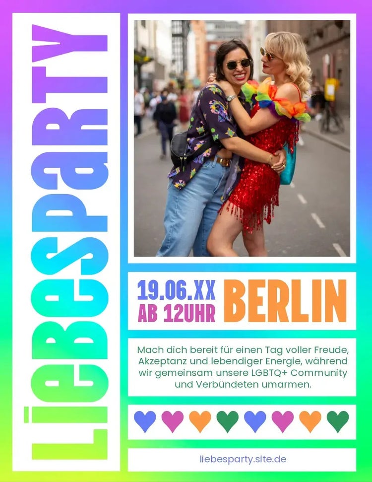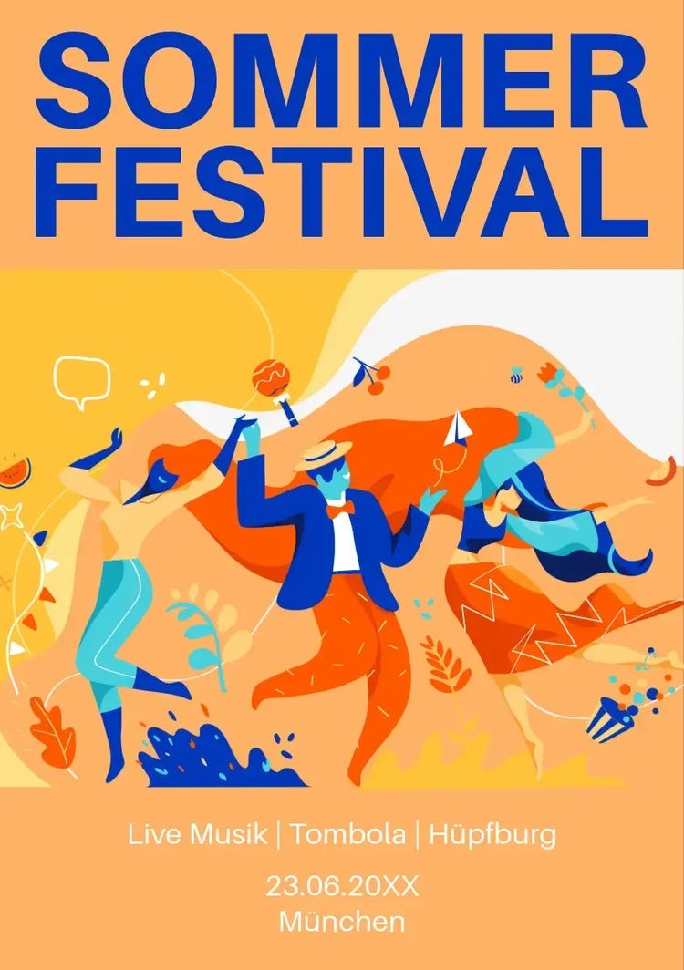 Überlege genau, welche Schriftarten du verwenden möchtest: Einheitliche und durchdachte Kombinationen in der Typografie des gesamten Flyers sorgen für ein ansprechendes und einladendes Erscheinungsbild, verbessern die Lesbarkeit und maximieren die Wirkung. Wähle Schriftarten, die gut lesbar sind und zur Stimmung oder zum Thema deiner Party passen. Setze Schriftgrößen und -stile strategisch ein, um wichtige Details hervorzuheben.