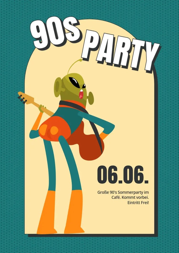 Mit Adobe Express ist es ganz einfach, deine Party in Schwung zu bringen. Starte mit einer der vorgefertigten, professionellen Vorlagen oder erstelle ein von Grund auf neues Design mit Hintergründen, Fotos, Symbolen, Logos, benutzerdefinierten Schriftarten und anderen anpassbaren Elementen, um deinen Party-Flyer einzigartig und authentisch zu gestalten.