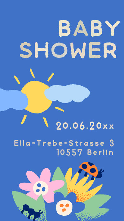 Du könntest beispielsweise Fotos verwenden. Stelle eine hübsche Collage aus deinen Lieblingsfotos zusammen, indem du deine Fotos in eine der Schwangerschafts-Vorlagen auf Adobe Express einfügst. Auch für eine Einladungskarte für eine Babyparty wirst du bei unseren tollen Vorlagen ganz sicher fündig.