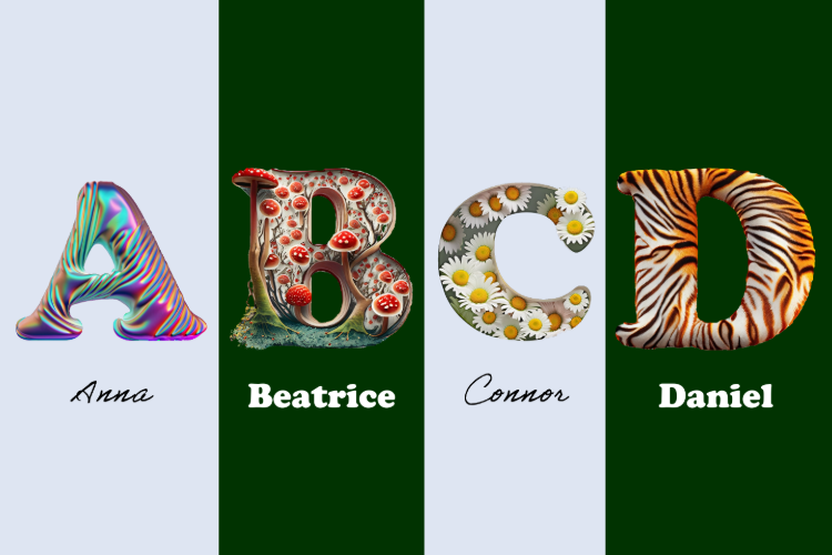 5. Initialen: Setze deine Initialen kreativ in Szene. Experimentiere mit Metalleffekten, Aquarelltönen oder sogar eindrucksvollen Galaxie-Designs.