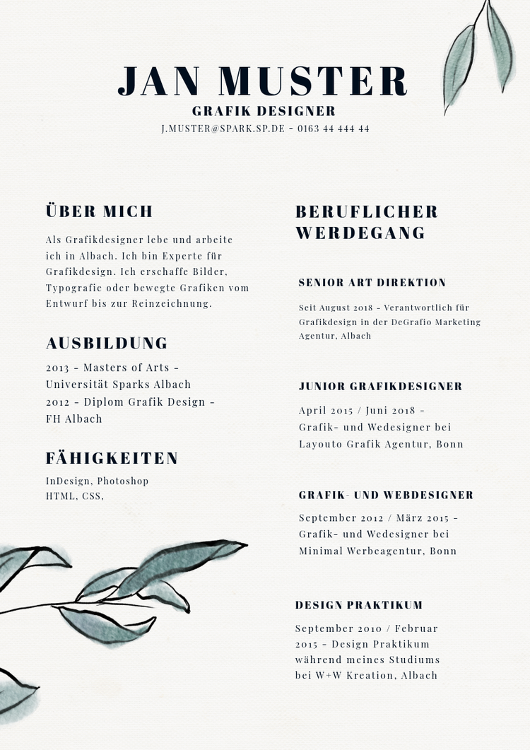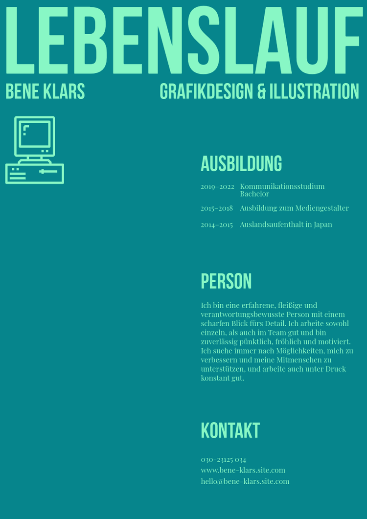 Gestalte einen Grafikdesign-Lebenslauf, der deinen ästhetischen Vorstellungen entspricht.