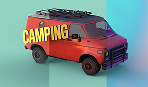 Erstelle eine Textebene, wandle sie in 3D um und positioniere sie neben dem Van.