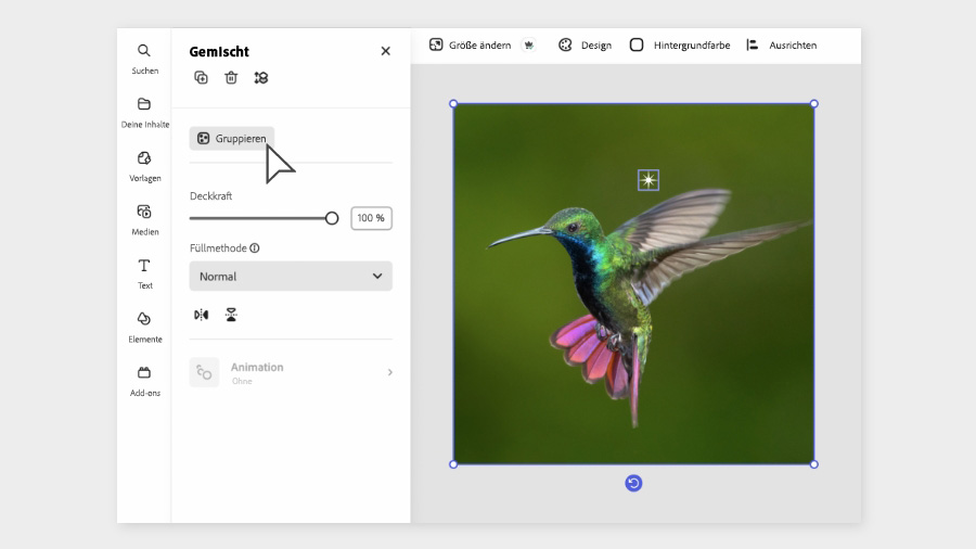 Klicke im linken Bedienfeld auf Gruppieren.