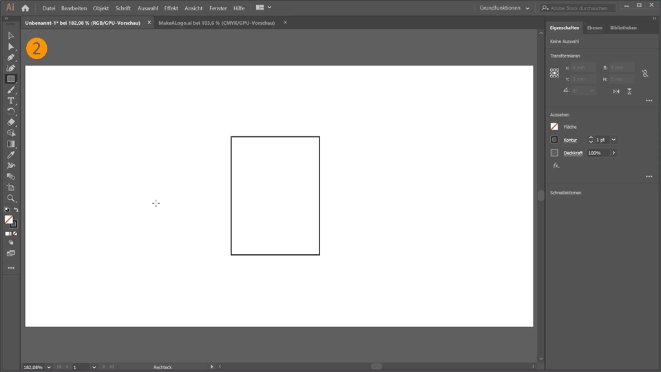 1. Rechteck-Werkzeug auswählen und durch Klicken und Ziehen ein Rechteck aufziehen.