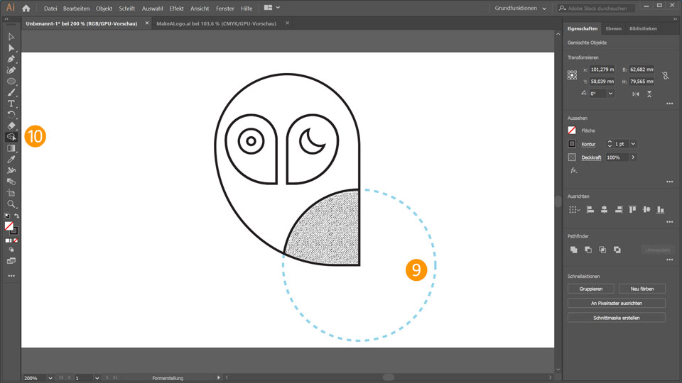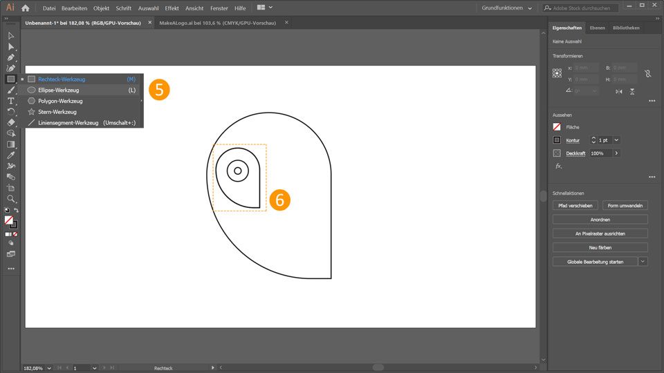 Logos, Icons und Illustrationen aus Grundformen erstellen.