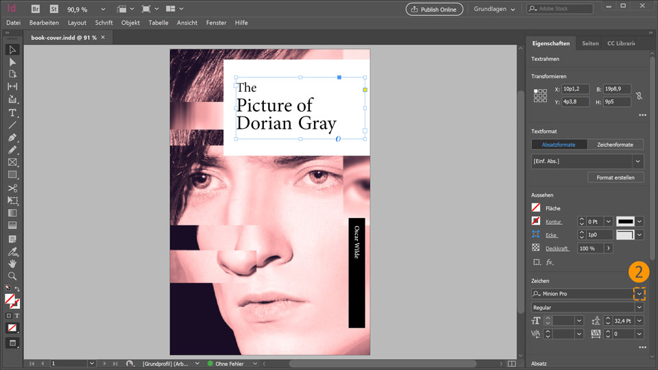 1.Beispieldateien herunterladen und die Datei „book-cover.indd“ öffnen.