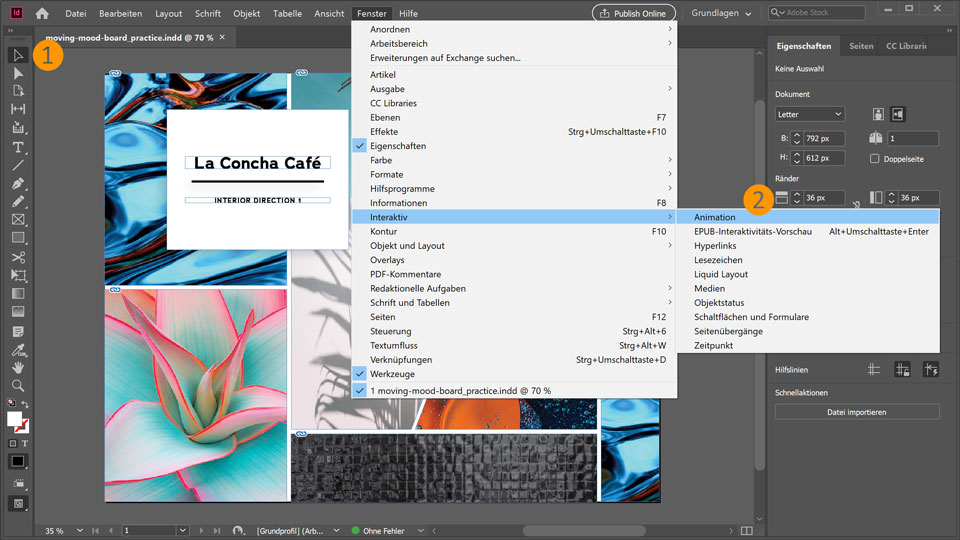Öffnedie Übungsdatei moving-mood-board_practice.indd.