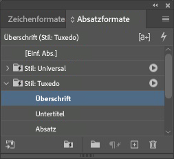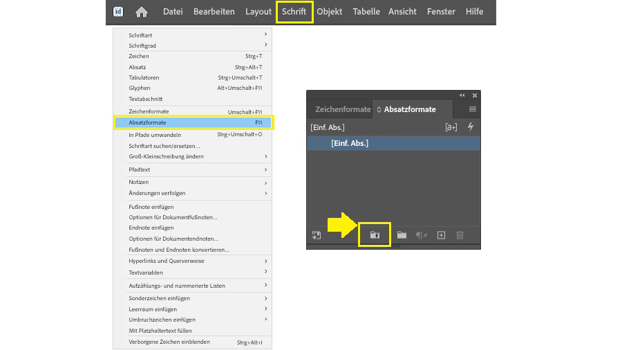 Wähle im Menü „Schrift“ die Option „Absatzformate“, um das Menü für Absatzformate zu öffnen.