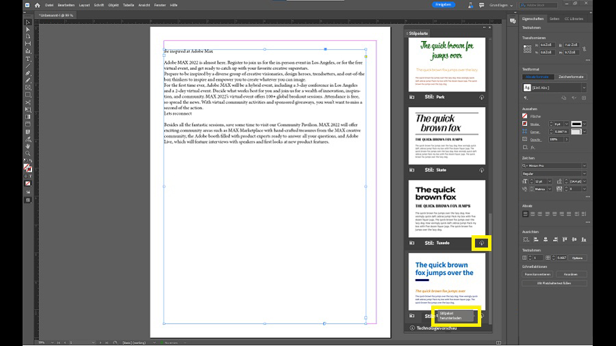 Wähle Text in einem Dokument aus, und wende dein neues Stilpaket darauf an.