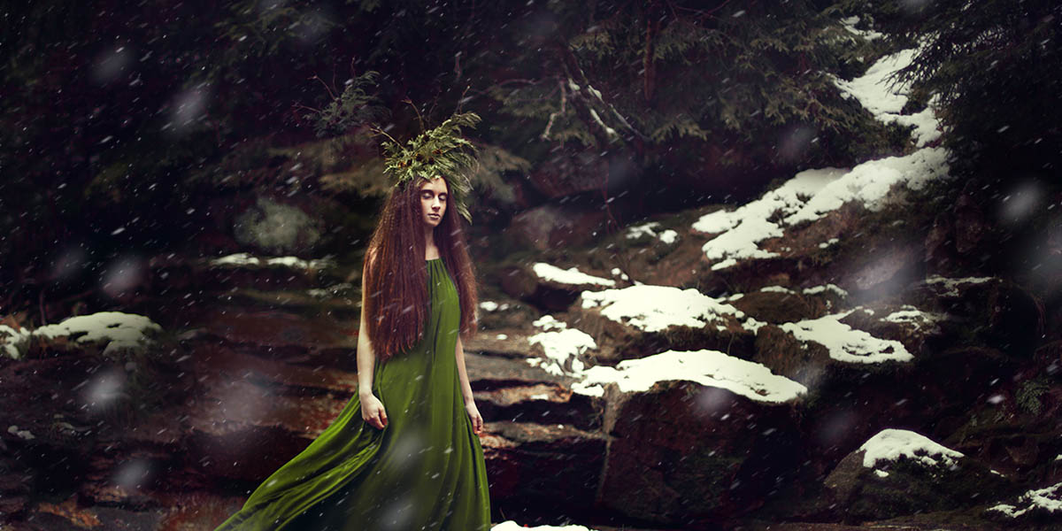 Fügen Sie dem grünen Laub einer Sommerszene den Eindruck einer dünnen Schneeschicht und Frost hinzu. Sie können diesen Effekt mit zwei Einstellungsebenen erzeugen.