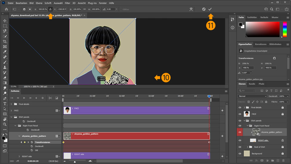 11. Bestätige die Transformation, indem du auf das Häkchen klickst.