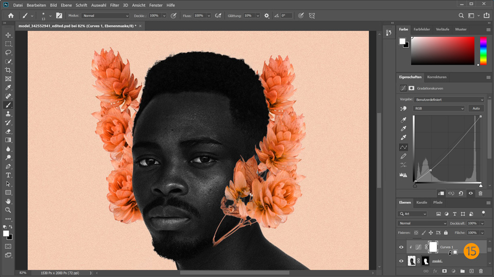 Tipp: Wenn du eine Blüten-Ebene unterhalb der Modell-Ebene platzierst, rücken diese Blüten hinter das Modell.