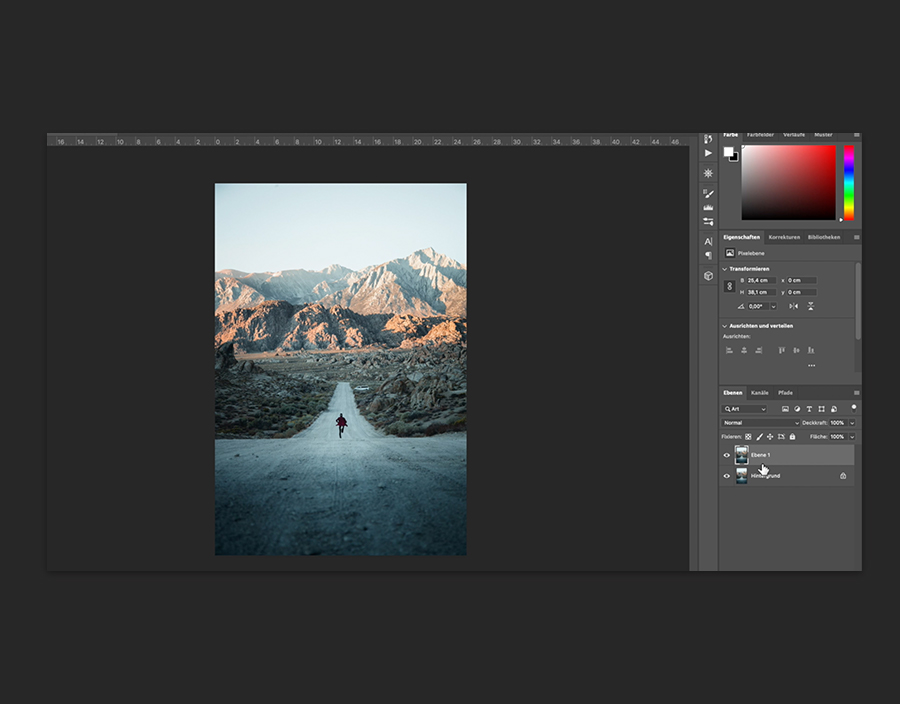 Drücke Befehlstaste/Strg+J auf der Tastatur, um das Bild zu duplizieren. Es ist immer ratsam, eine Kopie des Originals aufzubewahren, wenn du größere Änderungen vornehmen möchtest.
