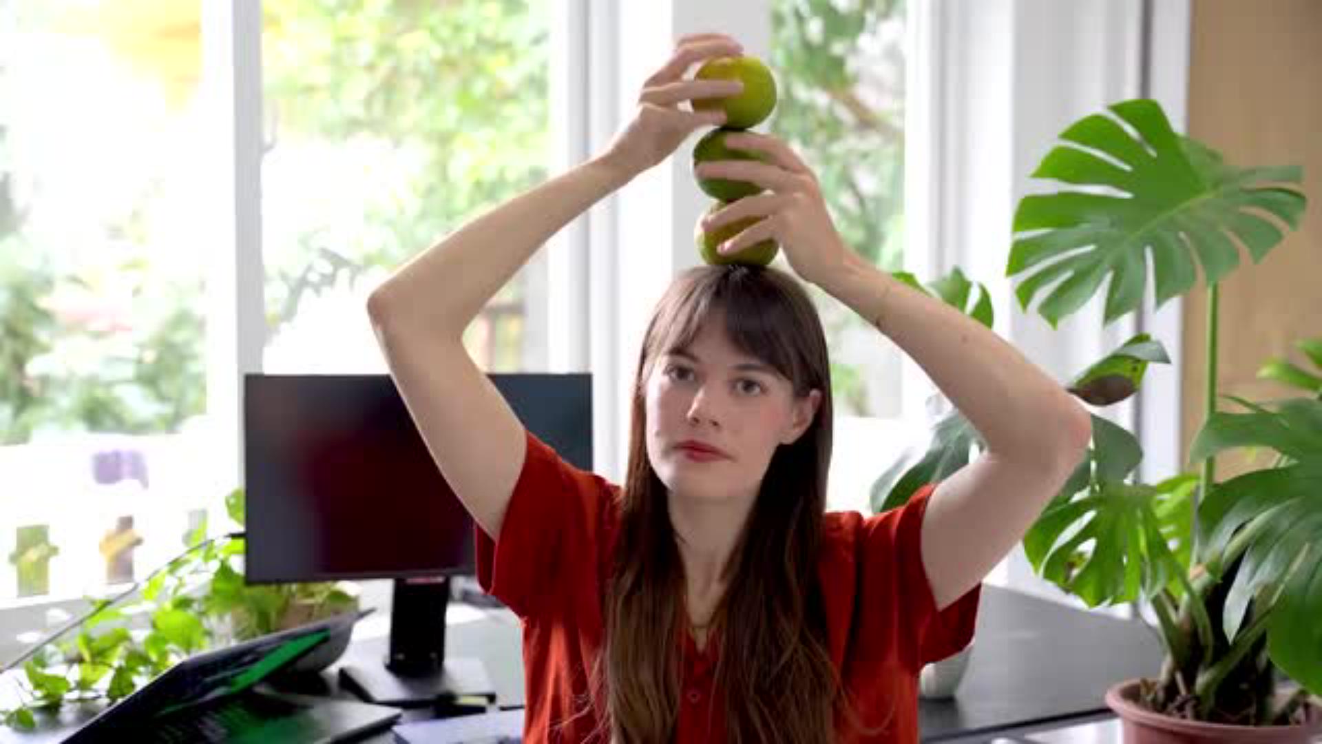 In diesem Photoshop-Tutorial erklärt dir Künstlerin Amelie Satzger die Basics der Fotomontage: Lerne wie du mithilfe einer Ebenenmaske und der selektiven Farbkorrektur Bilder nahtlos zusammenfügst, um einen ganzen Stapel Äpfel mit Leichtigkeit auf dem Kopf zu balancieren.
