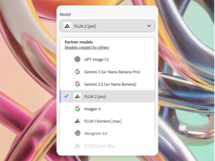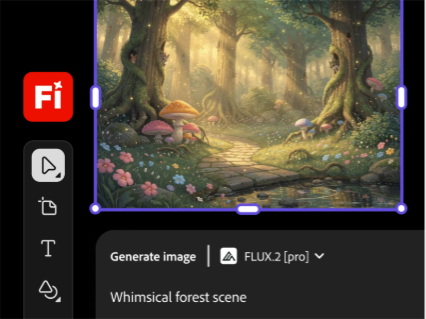 - Integrierte Workflows: Generiere Bilder mit FLUX-Modellen direkt in Firefly und mit „Generatives Füllen“ in Photoshop, ohne zwischen Tools zu wechseln oder den Fokus zu verlieren.