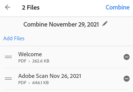 and drag a file up or down.To remove a file from the combine list, tap