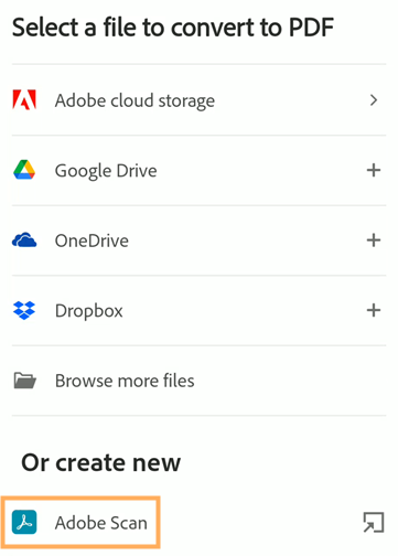 To quickly scan a page and save as PDF, tap Adobe Scan. It opens the Adobe Scan app in capture mode. The captured page opens in the Acrobat Reader.