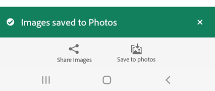 To save the exported pages to the device, select Save to Photos. It displays a permission dialog if Acrobat is accessing your Photos for the first time. From the dialog, select an appropriate option to continue.