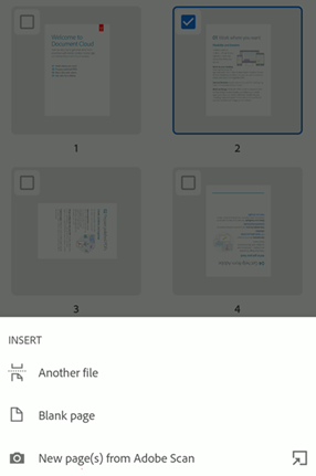 New page(s) from Adobe Scan: To quickly take a scan and insert the scanned page(s) into the PDF. It opens the Adobe Scan app in capture mode.