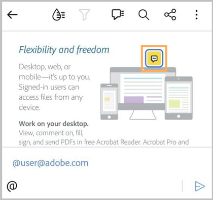 and then tap on the document where you want to add a comment.In the note field that appears, tap @ and then select a user from the list of contacts.