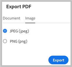 Export PDF.In the Export PDF page that opens, select Document or Image as the export option, as required.