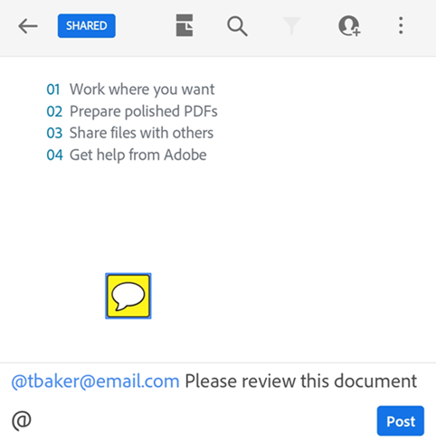 Share a PDF using @mention tag