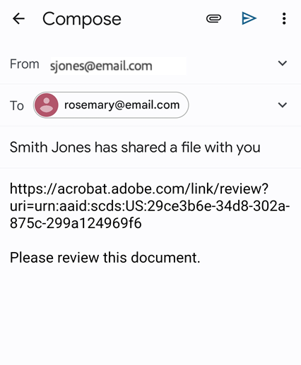 When you send a copy of the file via email, the recipients also receive a link to the Acrobat Reader app. If they do not have the app installed on their device, the link directs them to the Play Store or Galaxy Store.