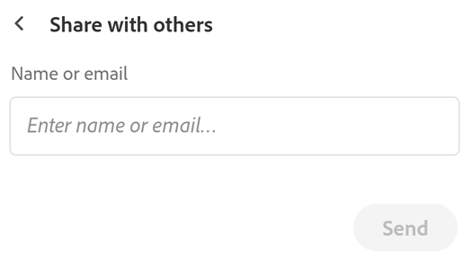 #. In the dialog that opens, select any of the sharing options and follow through the workflow. 3. To directly add people to the shared file, tap Invite People. #. In the Share with others dialog that appears, enter the name or email addresses of the people who you want to add. #. Tap Send.