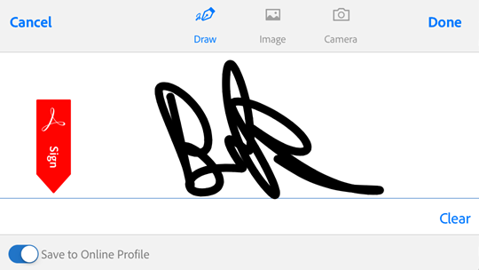 Acrobat speichert deine Signatur und hinterlegt sie in der Cloud, sodass du sie auf dem Desktop, im Internet und in allen mobilen Apps, einschließlich Acrobat Reader, Adobe Scan und Adobe Sign, verwenden kannst. Alle Plattformen unterstützen sowohl Foto- und Bild- als auch gezeichnete Freihandsignaturen.