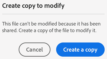 You cannot modify a file that has been shared for review. However, you can create a copy of any shared file and then modify it. To modify shared files: