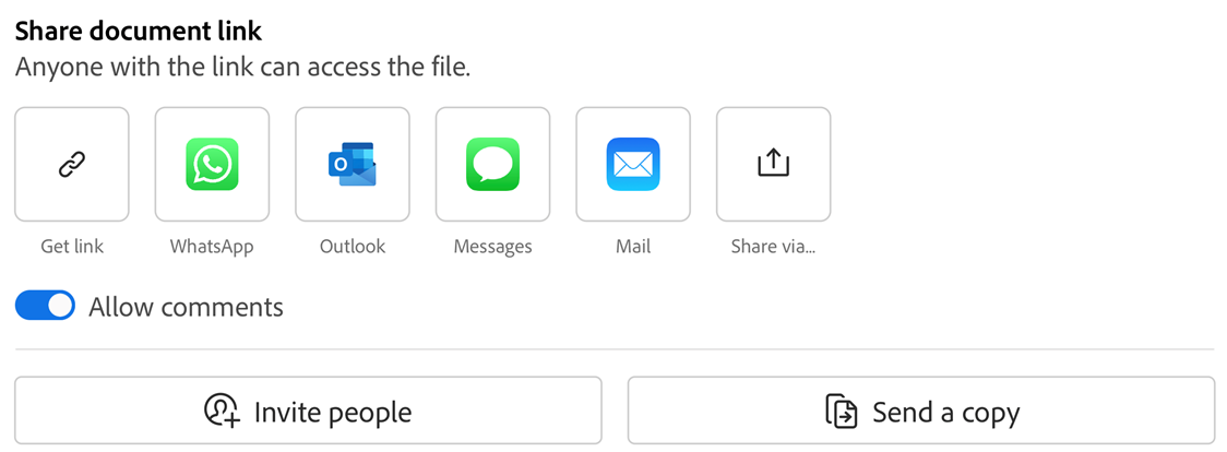 To allow recipients to add comments and annotations, enable Allow comments. Files with disabled commenting are read-only.