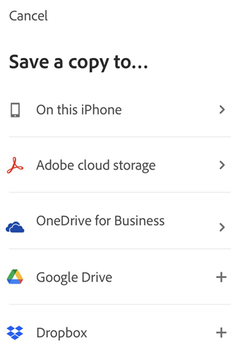 The file automatically uploads to Adobe cloud storage. Document recipients can access the file from the web as well as their desktop or phone.