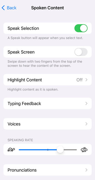 Tap Accessibility > Spoken Content.