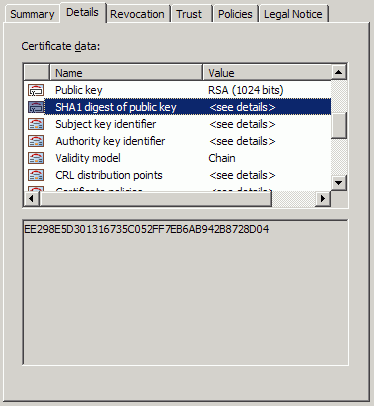 Highlight the SHA1 digest of the public key.