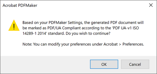 Specifies whether to suppress the confirmation dialog when the Acrobat preference Mark PDF/UA compliant is checked in Microsoft Word. |