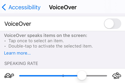Tippe auf VoiceOver und aktiviere die Funktion.
