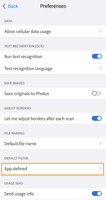 > Preferences.On the Preferences screen, under Default Filter, select > next to the preset default filter.