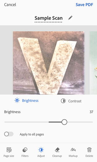 You can use the Adobe Scan app to instantly scan various types of documents, capture new images, or use existing images and convert them to digital copies. The Scan app converts images to PDF and saves them to Adobe cloud storage. Empowered with Optical Character Recognition (OCR), the app supports automatic text recognition that automatically converts image text to real text.