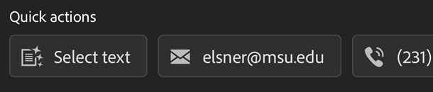 Adobe Scan now allows you to perform common actions from your scans. For example, when the app recognizes an email address or a phone number, the capture screen provides you with options to directly email, call, or copy the captured text. You can also use this feature to quickly contact a person from your business card scans.