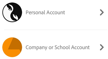 Si solo tiene una credencial de inicio de sesión, solo puede ver un conjunto de pantallas. Sin embargo, si forma parte de una organización y tiene otro identificador, es posible que se le solicite que elija entre un identificador personal y uno de la empresa. Si es así, seleccione una cuenta e inicie sesión con la credencial asociada a la misma.